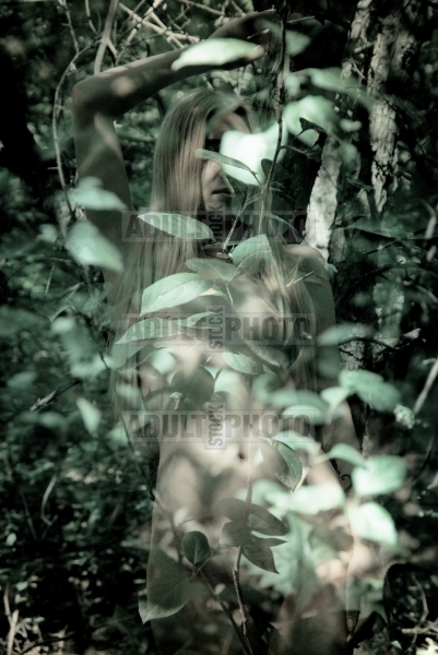 Young naked blonde in the forest