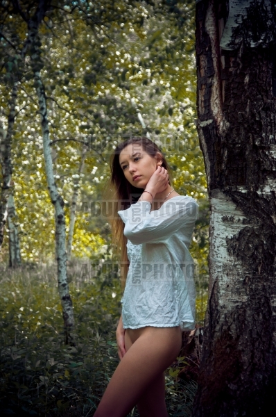 naked girl in a summer forest