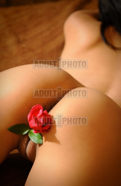 Description: Beautiful closeup of a woman's rear booty with lovely rose between her cheeks.